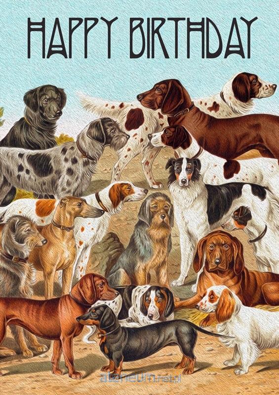 Karnet B6 z kopertą Urodziny Psy, w środku bez tekstu, wyprodukowany w Wielkiej Brytanii.