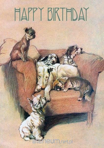 Karnet B6 z kopertą Urodziny Psy na fotelu, w środku bez tekstu, wyprodukowany w Wielkiej Brytanii.