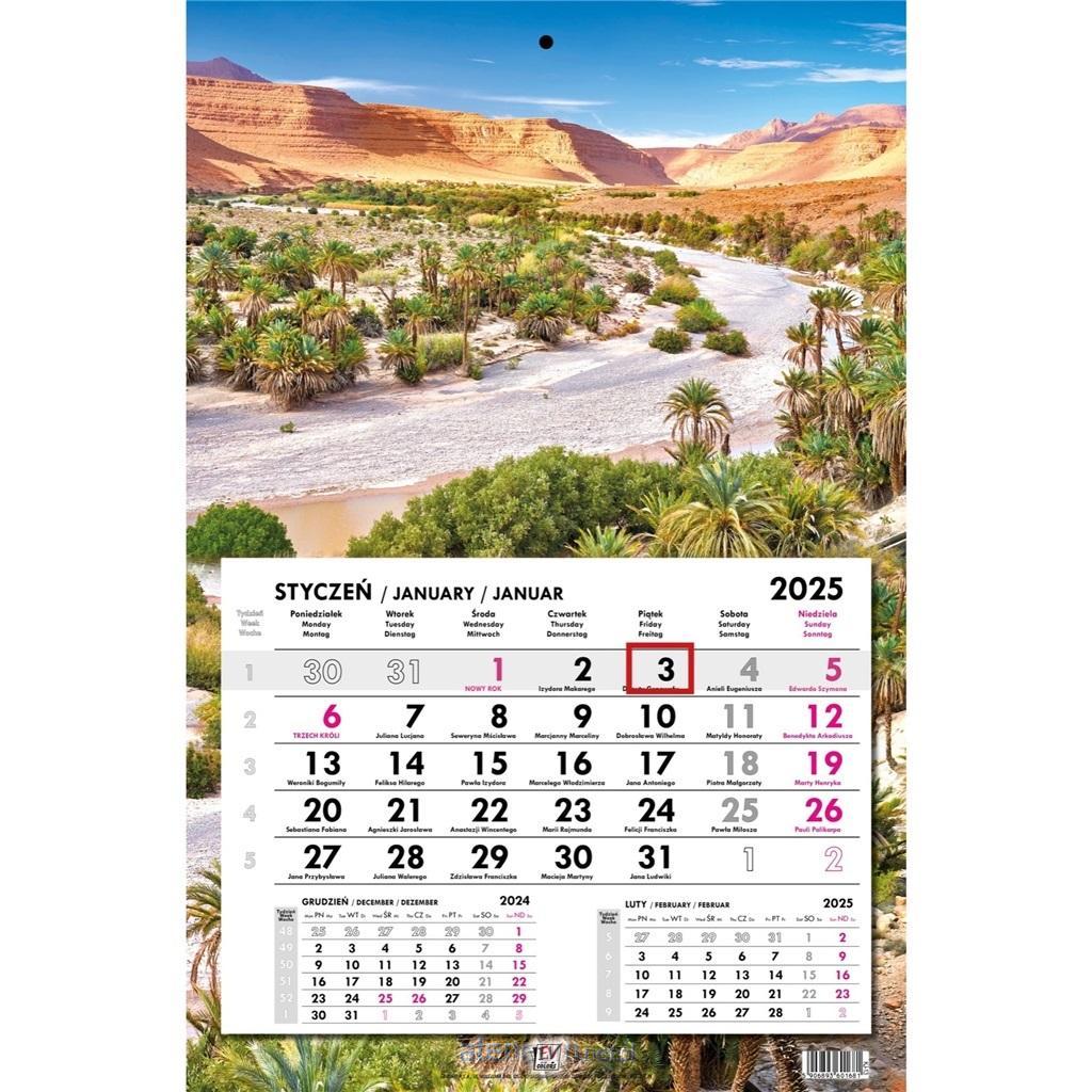 * kalendarz ścienny, jednodzielny z główką płaską z zadrukiem na całych pleckach