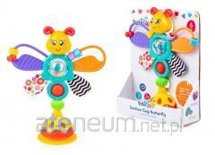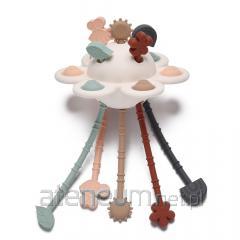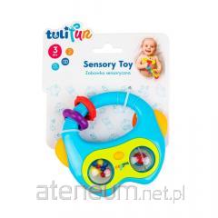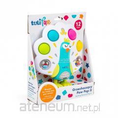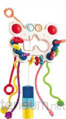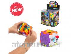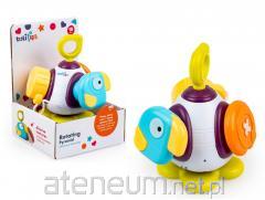 Podręczna skrzyneczka, wypełniona po brzegi zadaniami, aktywizującymi rączki malucha! Każda ze stron to inna, zręcznościowa zabawa. Jest tu włącznik do przesuwania, przycisk do klikania, wiatraczek, którym można kręcić za pomocą paluszka, trybiki i kluczyk do przekręcania, kuleczka do przesuwania i dwie kuleczki pop it do wciskania. Rączka skrzynki jest wysuwana, więc stanowi zarazem praktyczny uchwyt, ułatwiający przenoszenie zabawki.