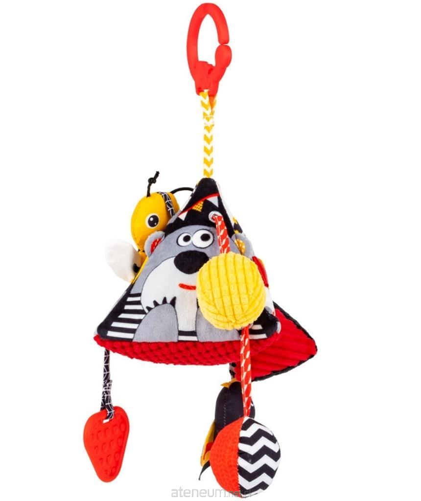 Kontrastowa zawieszka ucieszy oczko i zajmie łapki malucha sensoryczną zabawą! Wśród kryjących się tu niespodzianek, na bobasa czeka bezpieczne lusterko do samopoznania, piszczałka, gryzaczek, który przyniesie ulgę podczas ząbkowania, i tasiemka do przeciągania. Na jednym z jej końców znajduje się urocza pszczółka, która ma tu swój własny domek kieszonkę w kształcie plastra miodu. Zabawka wykonana została z materiałów różniących się wzorem i fakturą, które stymulować będą zmysły malucha, zachęcając go tym samym do sensorycznego odkrywania świata. Praktyczna zawieszka pozwoli zawiesić piramidkę w dowolnym miejscu, aby mogła towarzyszyć bobasowi w każdej sytuacji.