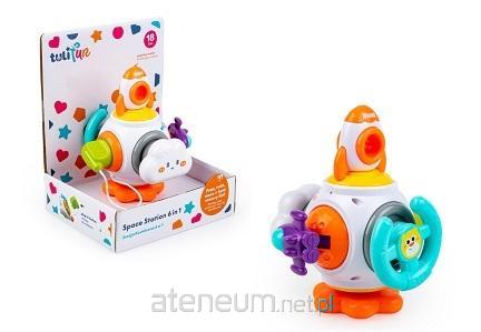 Misja kosmiczna ćwiczenie sprawności paluszków! Ta wielofunkcyjna zabawka wyposażona jest w wiele praktycznych zadań, z którymi dziecko może ćwiczyć motorykę małą. Znajduje się tu obrotowy ster, samolocik do przesuwania, wtyczka do wciskania, piszcząca chmurka, a także obrotowa gwiazdka, która jest zarazem ścianką, będącą podstawą zabawki. Po ustawieniu Stacji Kosmicznej na gwiazdce, można nią kręcić za pomocą paluszka. Kompaktowy rozmiar zabawki pozwala korzystać z niej zarówno w domu, jak i podczas podróży.