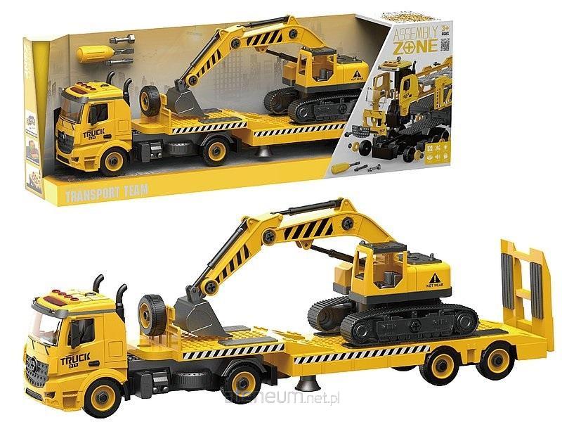 auto z lawetą i koparką, do skręcania, światło, dźwięk, napęd na koło zam; 64x22x12,5cm, W/B