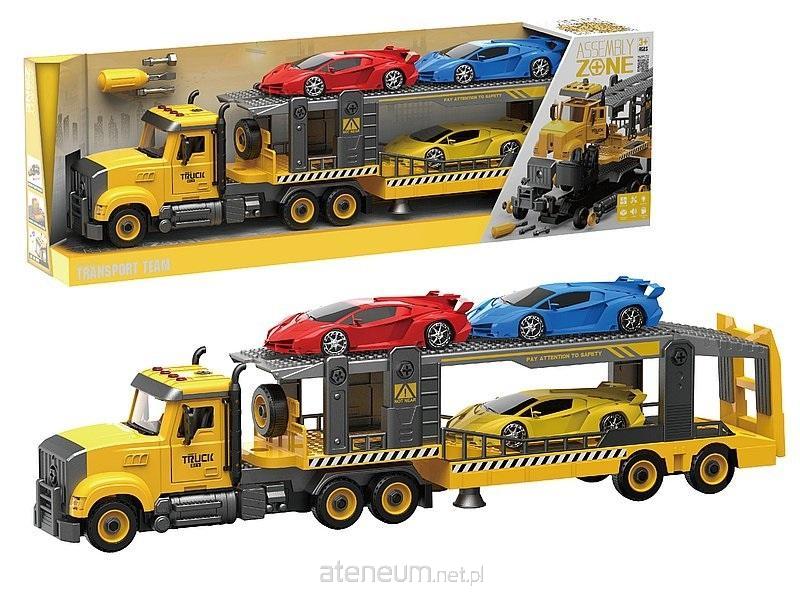 auto z lawetą i autami, do skręcania, światło, dźwięk; 66x11,5x15cm, W/B