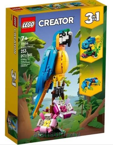 * Egzotyczne zwierzęta 3 w 1 - dzięki zestawowi LEGO® Creator 3 w 1 Egzotyczna papuga (31136) dzieci w wieku od siedmiu lat mogą cieszyć się zwierzętami z lasu deszczowego - papugą, rybą i żabą