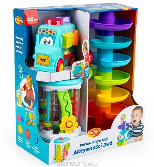 Potrójnie dobra zabawa w kształty, piłeczki i obrotowe elementy! Zestaw składa się z sortera na kółkach, rolusia z ruchomymi, sensorycznymi niespodziankami i z dużej, wysokiej na 40 cm kolorowej zjeżdżalni z piłeczkami. Wesoły autobusik na ścianach i dachu posiada otwory w różnych kształtach, do których należy dopasować dołączone klocki. Każdy z klocków różni się zarówno kształtem, jak i kolorem, co pozwala łączyć zabawę w sortowanie z nauką. Drugi element zestawu, roluś, posiada 8 ścianek, a na każdej z nich kryje się inna zabawa. Znajdziemy tu obrotowe elementy, zjeżdżalnie dla koralików, a nawet kwiatek do przesuwania. Wszystko to, aby jeszcze bardziej zainteresować maluszka. Ostatnia z zabawek, zjeżdżalnia, składa się z siedmiu kolorowych segmentów i dołączonych do zestawu piłeczek. Po umieszczeniu ich na górze, maluch może obserwować jak zjeżdżają serpentyną w dół. Rozrywka na najwyższym poziomie!
