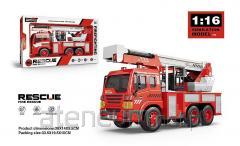 Magic Truck Action - Straż Pożarna jak na prawdziwy wóz strażacki przystało, posiada wysuwaną, ruchomą drabinę, na końcu której znajduje się kosz dla strażaka, pompkę oraz wąż, z którego, po napełnieniu zbiorniczka, tryska woda. Obrotowe elementy sprawiają, że strumień wody można skierować w dowolną stronę. Skrętną naczepę można przyczepić do kabiny na dwa sposoby, przez co auto może osiągnąć długość 80 cm. Dodatkowo została ona wyposażona w wysuwane nóżki podporowe, dzięki czemu może również stać samodzielnie. Pojazd wykonany jest z materiałów bezpiecznych dla dzieci. Ogromną zaletą jest trwałość i wytrzymałość konstrukcji, co sprawia, że zabawka może służyć dzieciom latami. Opis techniczny duży, wytrzymały, o solidnej konstrukcji wóz strażacki o długości 79 cm wyposażony w wysuwaną, ruchomą drabinę z koszem dla strażaka, wąż, pompkę oraz zbiornik na wodę zabawka wykonana z bardzo trwałych i bezpiecznych materiałów odpornych na warunki atmosferyczne przeznaczona dla dzieci 3+