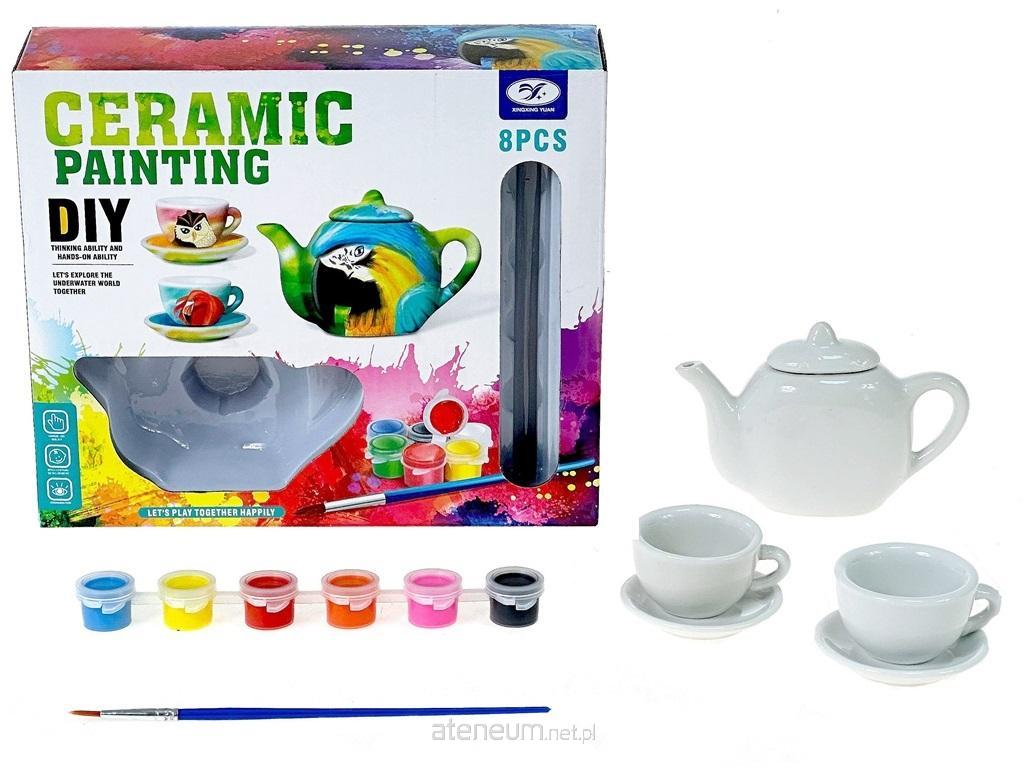Zestaw do herbaty, ceramiczny, do malowania, z farbami; 22,5x19x6cm