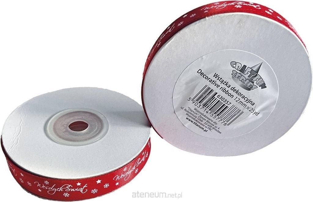 Wstążka satynowa z nadrukiem Wesołych Świąt 12mm 25 yardów czerwona biały nadruk