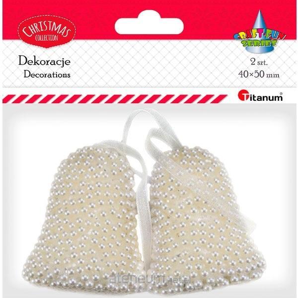 Zawieszki dzwonki 40x50mm na wstążce satynowej oklejone perełkami 2szt.