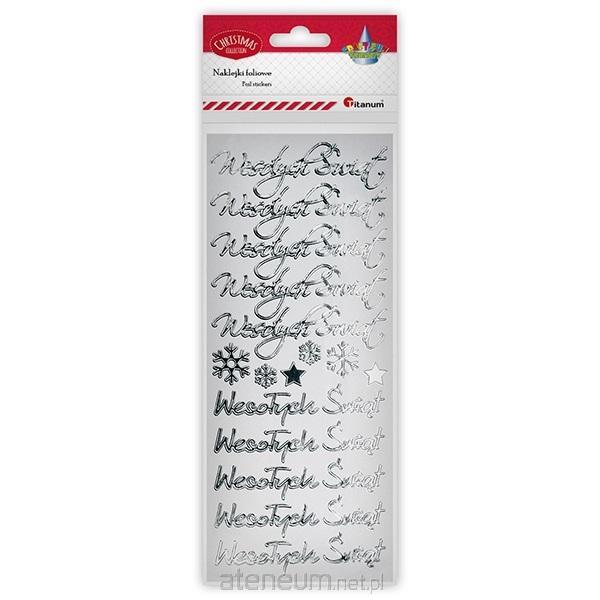 Naklejki foliowe napisy Wesołych Świąt 2 rodzaje 10szt. + gwiazdki 2szt. + płatki śniegu srebrne 4szt.