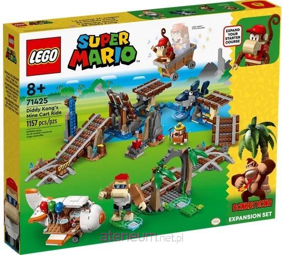 Stwórz legendarny poziom Donkey Konga w zbudowanym z klocków świecie LEGO® Super Mario dzięki zestawowi Przejażdżka wagonikiem Diddy Konga - zestaw rozszerzający (71425). Umieść figurkę LEGO® Mario, LEGO® Luigi lub LEGO® Peach (brak w zestawie) w wagoniku kopalnianym i przejedź się po torze. Zepchnij Snagglesa z drogi, napraw zepsuty odcinek toru, pokonaj Mole Minera i "wysadź" skałę, aby odsłonić kiść bananów. Możesz je zjeść lub podarować Funky Kongowi lub Diddy Kongowi. Kup balony w sklepie lotniczym i "lataj" samolotem, aby zarobić jeszcze więcej cyfrowych monet. Uwaga: do interaktywnej gry wymagany jest zestaw startowy 71360, 71387 lub 71403.
