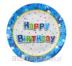 Talerzyki papierowe Happy Birthday nieb 18cm 6szt