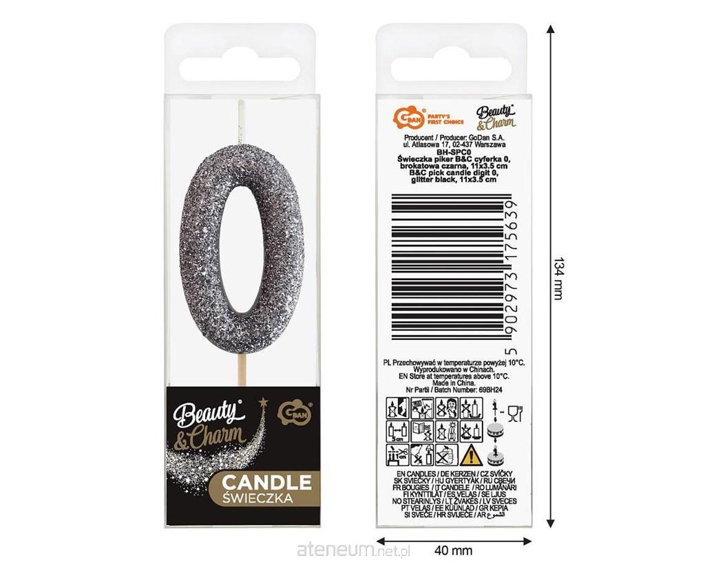 Świeczka piker 9 czarna brokatowa 11x3.5 cm