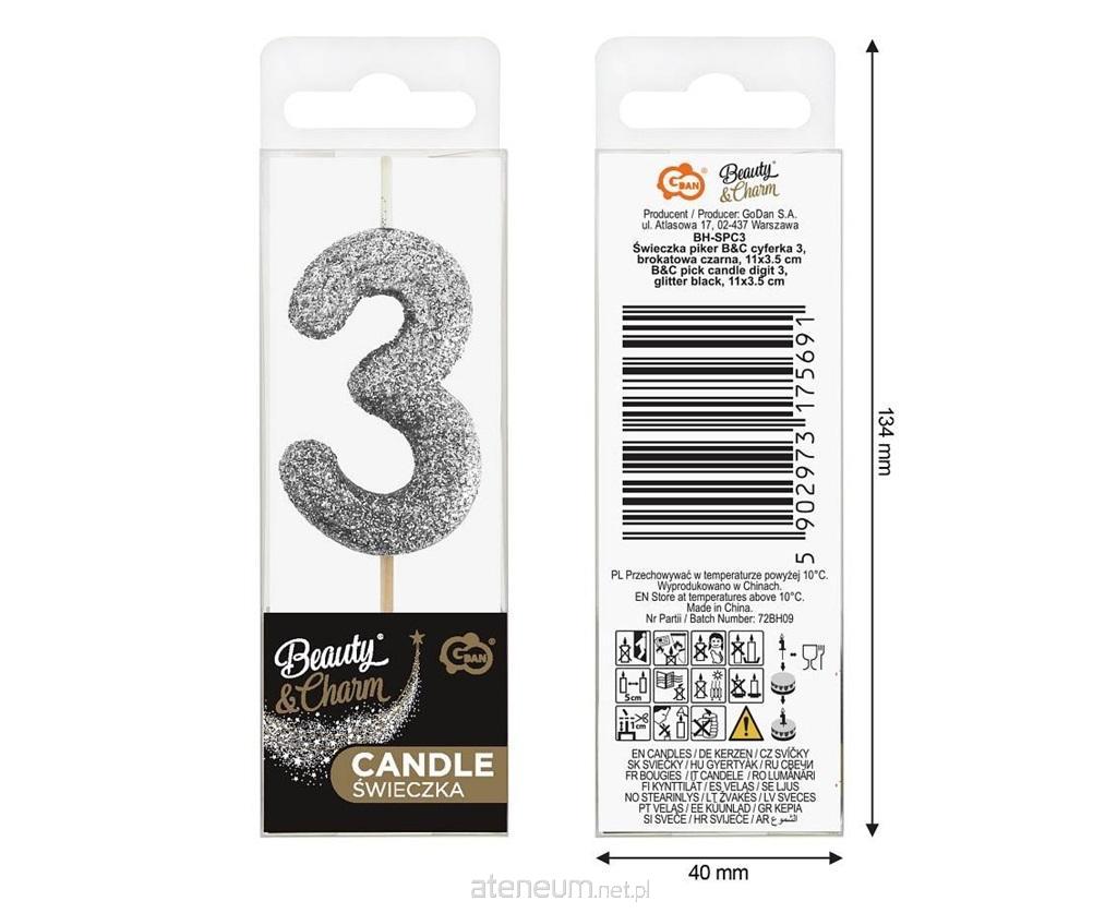 Świeczka cyferka 3 Sparkling Celebrations srebrna