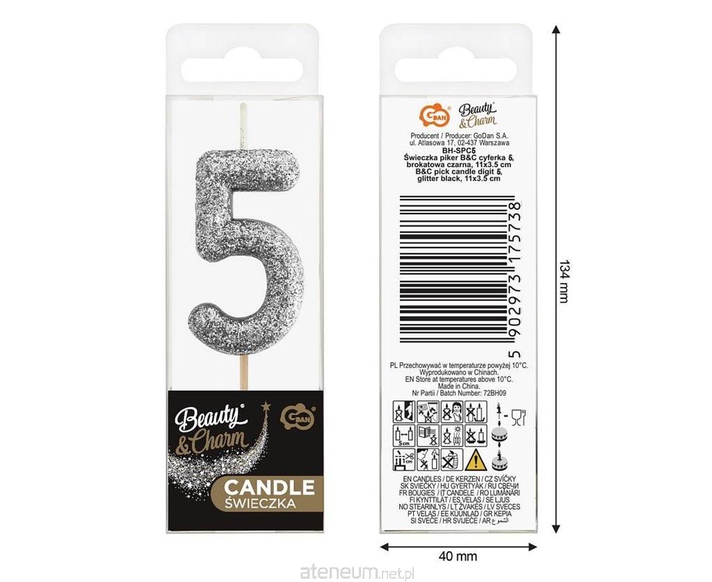 Świeczka piker 0 czarna brokatowa 11x3.5 cm