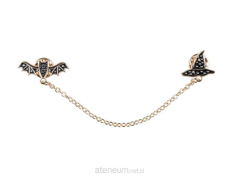 Przypinka na kołnierzyk Nietoperz z łańcuszkiem, mix kolorów, wymiary ok. 13.5 cm.