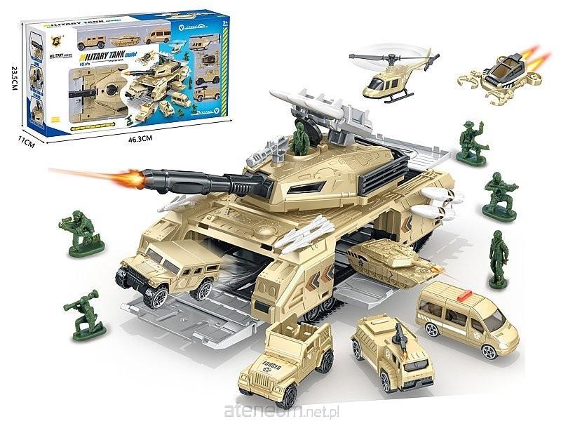 baza wojskowa w czołgu, pojazdy, żołnierze; 46,5x23,5x11cm, W/B