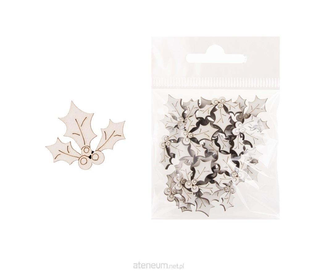 Drewniane ostrokrzewy jako artykuł dekoracyjny idealnie nadają się do decoupage, scrapbookingu czy jako dekoracja opakowań prezentowych, pudełek, kartek świątecznych itp. Charakteryzuje je wysoki poziom wykonania dzięki laserowej obróbce materiału. Produkt jest bezpieczny dla ludzi oraz środowiska i w pełni ekologiczny. Średnica pojedynczego elementu ok 23mm. Zapakowane w woreczek z eurowieszakiem, który zawiera 24szt ostrokrzewów.