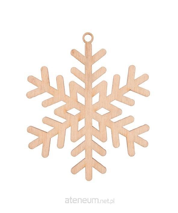 Drewniana śnieżynka w kształcie płatku śniegu naturalna. Średnica 8cm, wysokość całkowita 9cm. W opakowaniu 3szt