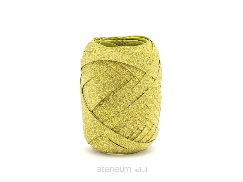 Wstążka plastikowa brokatowa w kolorze złotym, szerokość ok. 5 mm, długość ok. 10 m.