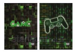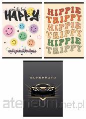 Dodatkowo, środek zeszytu został zadrukowany trzylinią w różnych kolorach, co ułatwia organizację notatek oraz czytelność zapisanych treści.