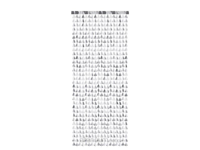 Kurtyna - Choinki wykonana z folii w kolorze srebrnym, wymiary: szerokość ok. 100 cm, długość ok. 245 cm