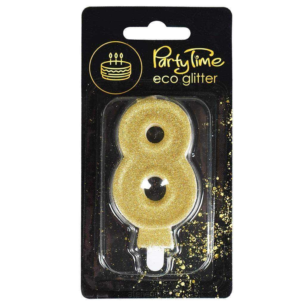 Świeczka cyferka z eko-brokatem nr 8