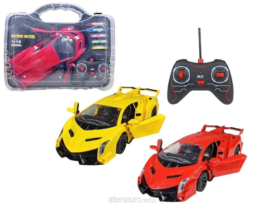 W zestawie: auto skala 1:18, kontroler, akumulator, ładowarka, funkcje: pełny zakres jazdy, działające przednie światła, ustawienie zbieżności kół, gumowe opony, baterie 1 x akumulator 3.7v (auto) dołączony, 2 x aa (kontroler) niedołączone, 3+
