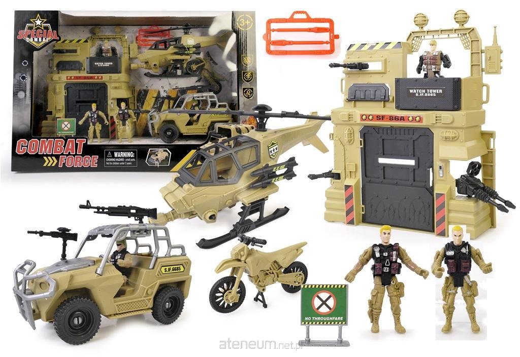 W zestawie: 3 figurki żołnierzy, łódź, motorówka, samolot, helikopter, ponton, akcesoria wojskowe, funkcje: ruchome elementy, wys. figurki 10 cm, wym. opak. 55,6 x 36,5 x 11,5 cm, 3+