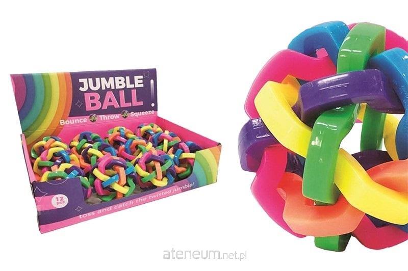 12 szt/disp, śr. piłki 7 cm, piłka składa się z plątaniny gumowych pasków, można ją odbijać, gnieść, rzucać, wym. disp. 29,5 x 21,5 x 7,5 cm, 3+