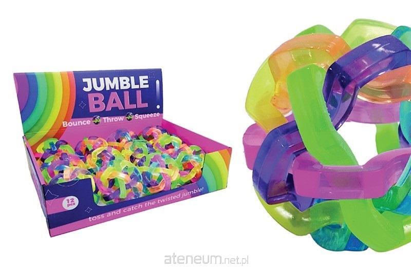 Opis: 12 szt/disp, śr. piłki 7 cm, piłka składa się z plątaniny gumowych pasków, można ją odbijać, gnieść, rzucać, wym. disp. 29,5 x 21,5 x 7,5 cm, 3+