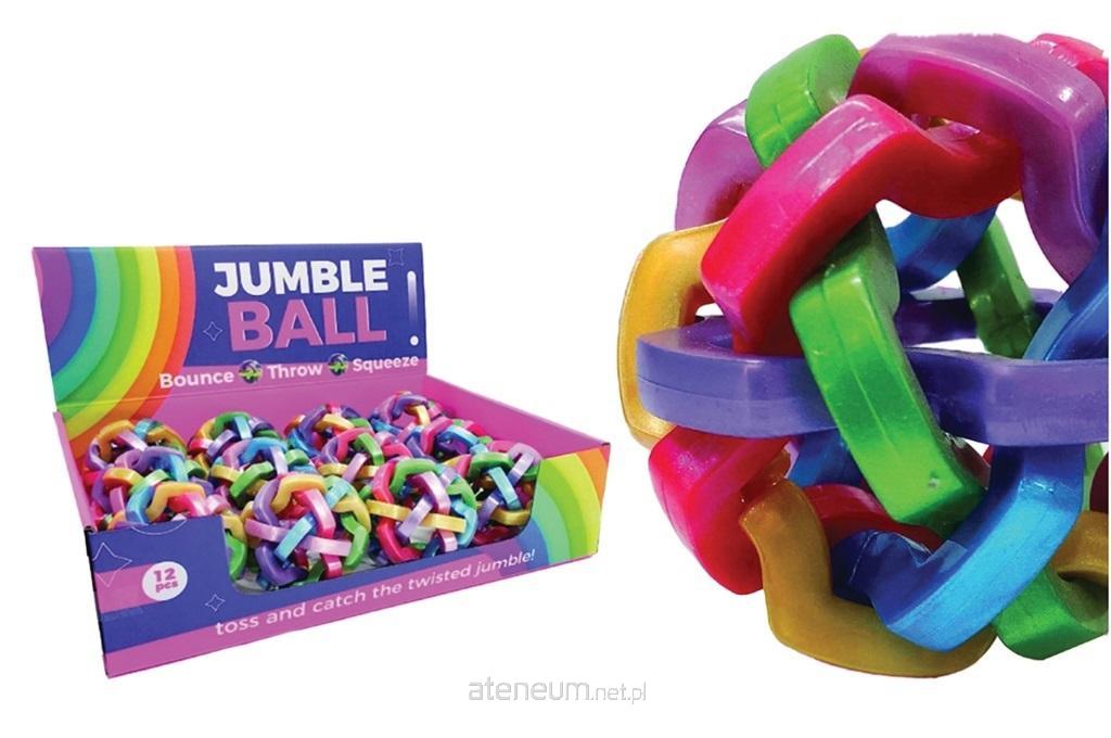Opis: 12 szt/disp, śr. piłki 7 cm, piłka składa się z plątaniny gumowych pasków, można ją odbijać, gnieść, rzucać, wym. disp. 29,5 x 21,5 x 7,5 cm, 3+