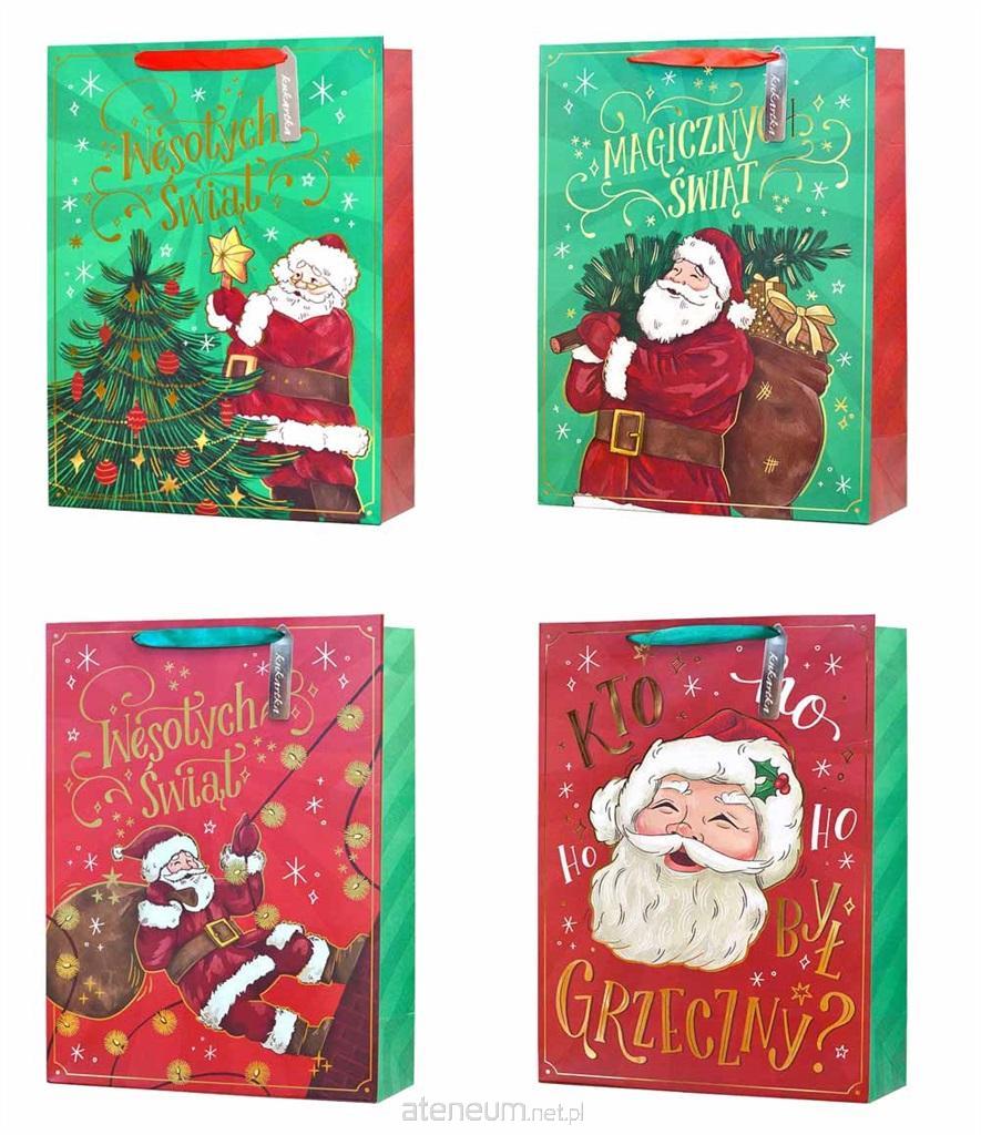 Cechy szczególne: typ produktu: torba na prezent, zdobienie: metaliczna folia, wielkość orientacyjna: 26 x 32,3 x 12,5 cm (szerokość x wysokość x głębokość), okazja: Boże Narodzenie