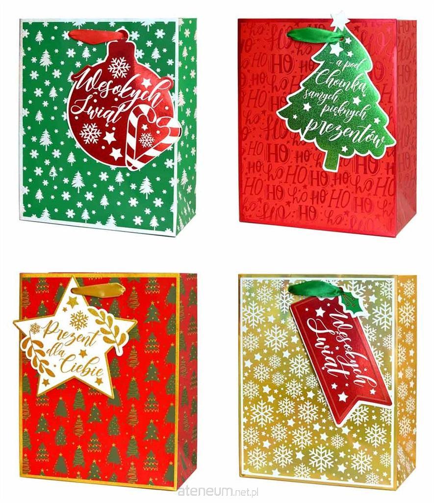 Cechy szczególne: typ produktu: torba na prezent, zdobienie: metaliczna folia, wielkość orientacyjna: 26 x 32,3 x 12,5 cm (szerokość x wysokość x głębokość), okazja: Boże Narodzenie