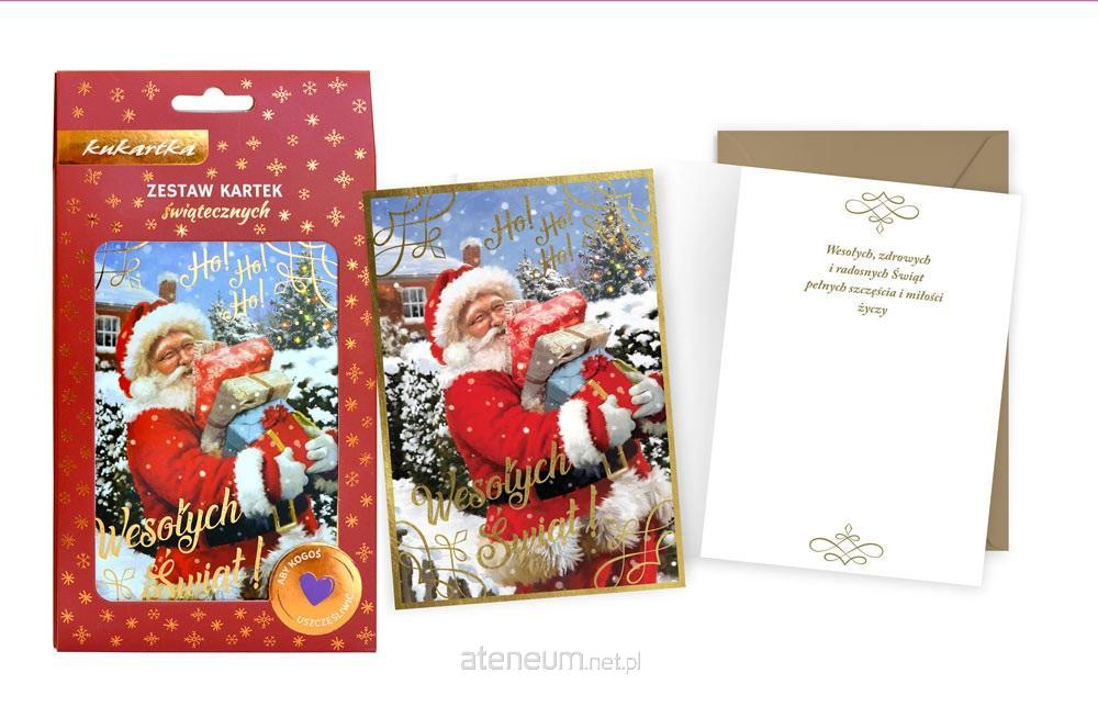 Zestaw kartek świątecznych ZKA-001 Zestaw zawiera 10 jednakowych kartek świątecznych z kopertami. Karnety są kolorowe i uszlachetnione metalizowaną folią hot-stamp. Ten zestaw to idealne rozwiązanie, aby mieć zawsze pod ręką zapas pięknych kartek świątecznych, gotowych do wręczenia bliskim i znajomym w okresie świątecznym. Kartki zawierają życzenia w środku oraz dopasowaną kopertę. Specyfikacja: Wymiary kartki: 10 x 15 cm (po złożeniu) Wymiary opakowania: 11,2 x 1,5 x 20,5 cm (długość x szerokość x wysokość) wnętrze: życzenia w środku zdobienia: metaliczna folia koperta: w zestawie okazja: BN