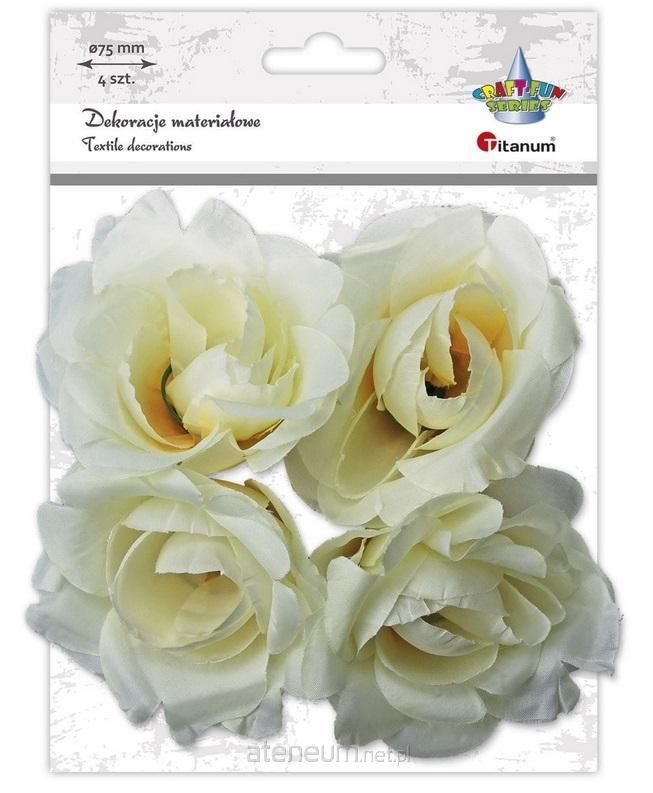 Materiałowe róże 3D średnica 75mm białe na druciku 4szt.