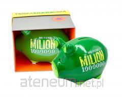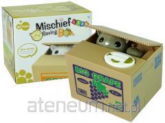Skarbonka piesek Grafitowy Wesoły piesek jest bardzo głodny i marzy o jedzeniu. Nie może powstrzymać się przed zjedzeniem czegokolwiek, co wpadnie do jego miseczki. Wrzuć tam monetę i obserwuj, jak wpada w szaleństwo jedzenia, zachłannie szukając smakołyku. Ta oryginalna, interaktywna skarbonka jest niespotykanie ciekawa. Ruchomy piesek pomoże zrozumieć dziecku, że oszczędzanie pieniędzy jest bardzo istotne i posiada same zalety - a z wykorzystaniem prezentowanej skarbonki jest bardzo widowiskowe i zabawne. Ta rewelacyjna skarbonka składa się z dużej skrzyni, będącą pojemnikiem na pieniądze dziecka, ruchomej miski z otworem na monetę i energicznego psa, który porusza oczkami, uszkami, językiem i ogonem, generując przy tym dźwięki. Beżowa skrzynka ozdobiona jest napisem Choken-Bako oraz czterema obrazkami, natomiast piesek siedzący na jej pokrywie ma różowy język, czerwony nosek i ciemne, grafitowe umaszczenie. W dolnej części zabawki znajduje się miejsce na dwie baterie 1,5 V AA, które są konieczne do uruchomienia pieska, oraz przełącznik ON/OFF. Z przodu skrzynki umieszczona jest pokrywka, ułatwiająca opróżnienie skarbonki i wydanie oszczędności na marzenie dziecka. Zabawka przeznaczona jest dla wszystkich dzieci powyżej 6. roku życia, zapakowana jest w kartonowe pudełko z witrynką. Uważamy, że skarbonka-piesek w kolorze grafitowym jest doskonałym połączeniem nowoczesnego wzornictwa z wielofunkcyjnością. Piesek nie tylko przechowa pieniądze dziecka, ale będzie świetnie prezentować się na jego biurku lub w pokoju, zachęcając do wrzucenia kolejnej monety. Wymiary skarbonki: - cała skarbonka: 15 cm x 8 cm x 16,5 cm, - skrzynia: 15 cm x 8 cm x 6,5 cm, - pies: 13 cm x 5 cm x 12 cm. Wymiary opakowania: - 20 cm x 18 cm x 8,5 cm.
