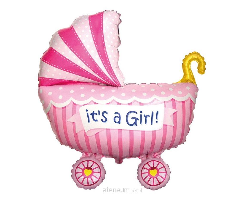 BALON FOLIOWY WÓZEK DLA DZIEWCZYNKI (RÓŻOWY), PAKOWANY
