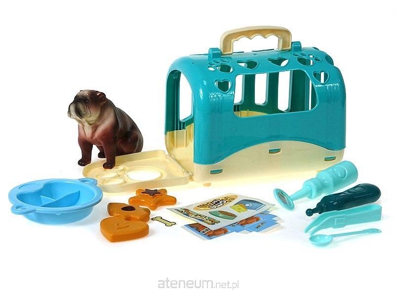 Piesek z klatką do przenoszenia, z akcesoriami; 29,5x18x13,5cm, Box