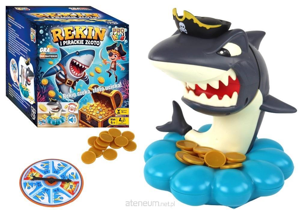 Gra "Rekin Pirackie Złoto" to dynamiczna gra rodzinna, która dostarcza mnóstwo śmiechu emocji. Gracze wcielają się rolę piratów, próbując zdobyć złote monety ukryte pod rekiniem. Uwaga! Rekin może zaatakować każdej chwili, co dodaje elementu niespodzianki adrenaliny. Gra sprzyja rozwijaniu refleksu koordynacji ruchowej, jej proste zasady czynią ją odpowiednią nawet dla najmłodszych graczy.
