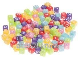 Koraliki literki kolorowe biała kostka 20g+sznurek