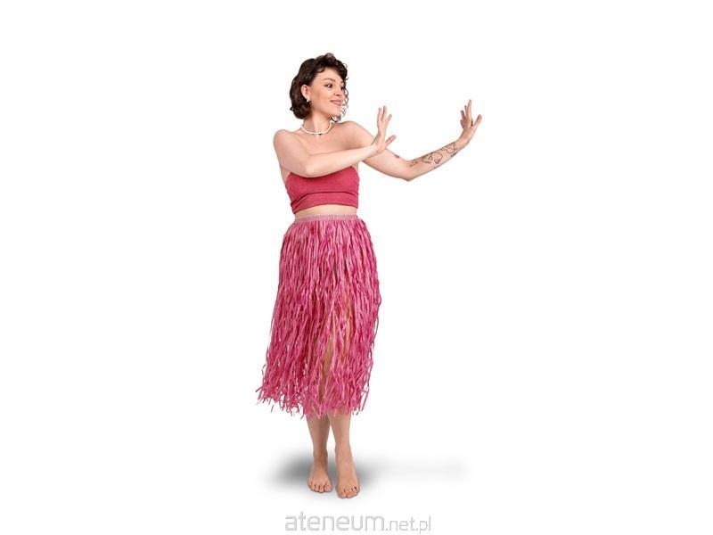 Spódnica hawajska z rafii w kolorze różowym. Rozmiar uniwersalny dla dorosłych. Spódnica ma elastyczną gumkę w pasie. Wymiary produktu: długość 77 cm, szerokość w pasie 31,5 cm
