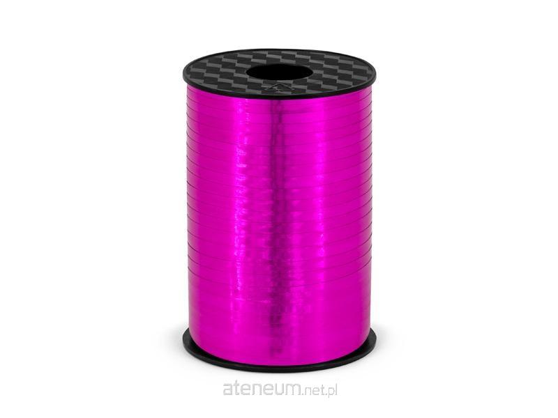 Wstążka plastikowa metalizowana w kolorze ciemnoróżowym, szerokość ok. 5 mm, długość ok. 225 m.