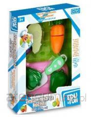 Ekologiczny zestaw kuchenny dla dzieci, wykonany z bio-materiału na bazie słomy pszenicznej, to idealna zabawka dla małych miłośników gotowania i ekologii. Zestaw zawiera koszyk, różne akcesoria kuchenne, talerzyki, sztućce, filiżanki i garnki, które pozwalają na tworzenie różnorodnych scenek podczas zabawy. Wszystkie elementy mają delikatne, naturalne kolory i przyjazny, ekologiczny design. Zabawka uczy dzieci dbania o środowisko i rozwija ich wyobraźnię oraz zdolności manualne, zapewniając przy tym bezpieczną i kreatywną zabawę.