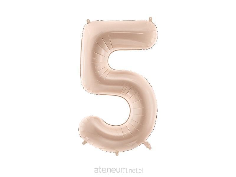 Balon foliowy matowy Cyfra 5 w kolorze ciemnobeżowym, rozmiar przed napompowaniem ok. 86 cm (34''), rozmiar po napompowaniu ok. 72 cm (28''). Do napompowania powietrzem i helem. Zestaw zawiera słomkę. Balon jest samouszczelniający się. Posiada 4 haczyki ułatwiające montaż balona do dekoracji.