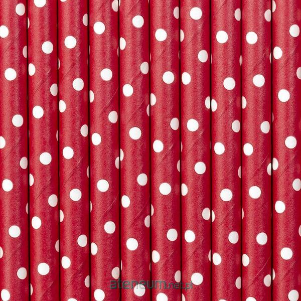 Słomki papierowe w kolorze czerwonym z białymi małymi kropkami, długość około 19,5 centymetra.(1 op. / 10 szt.)