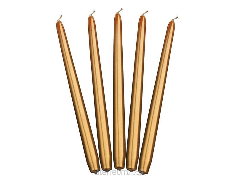 Świeca stożkowa metalizowana w kolorze złotym, wysokość 29 centymetrów. Czas palenia 1 sztuki około 6 godzin.(1 op. / 10 szt.)