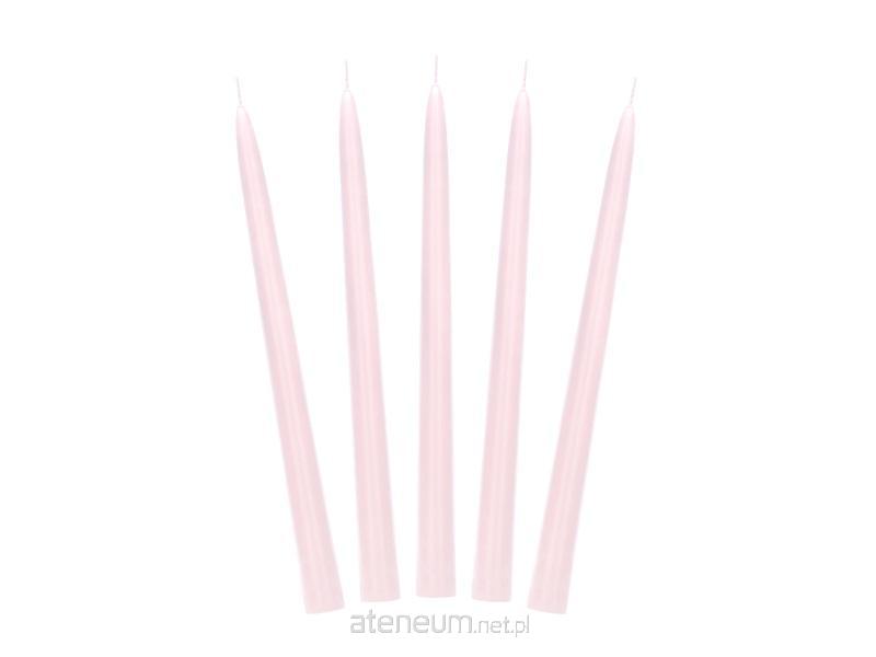 Świeca stożkowa matowa w kolorze jasnoróżowym, wysokość 24 centymetry. Czas palenia 1 sztuki około 5 godzin.(1 op. / 10 szt.)
