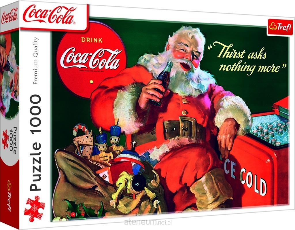 Świąteczne puzzle Coca-Cola: Prezenty od Mikołaja, składające się z 1000 elementów, przedstawiają Świętego Mikołaja z workiem prezentów i lodówką pełną Coca Coli. Po ich ułożeniu powstanie obrazek w rozmiarach 683x480 mm.